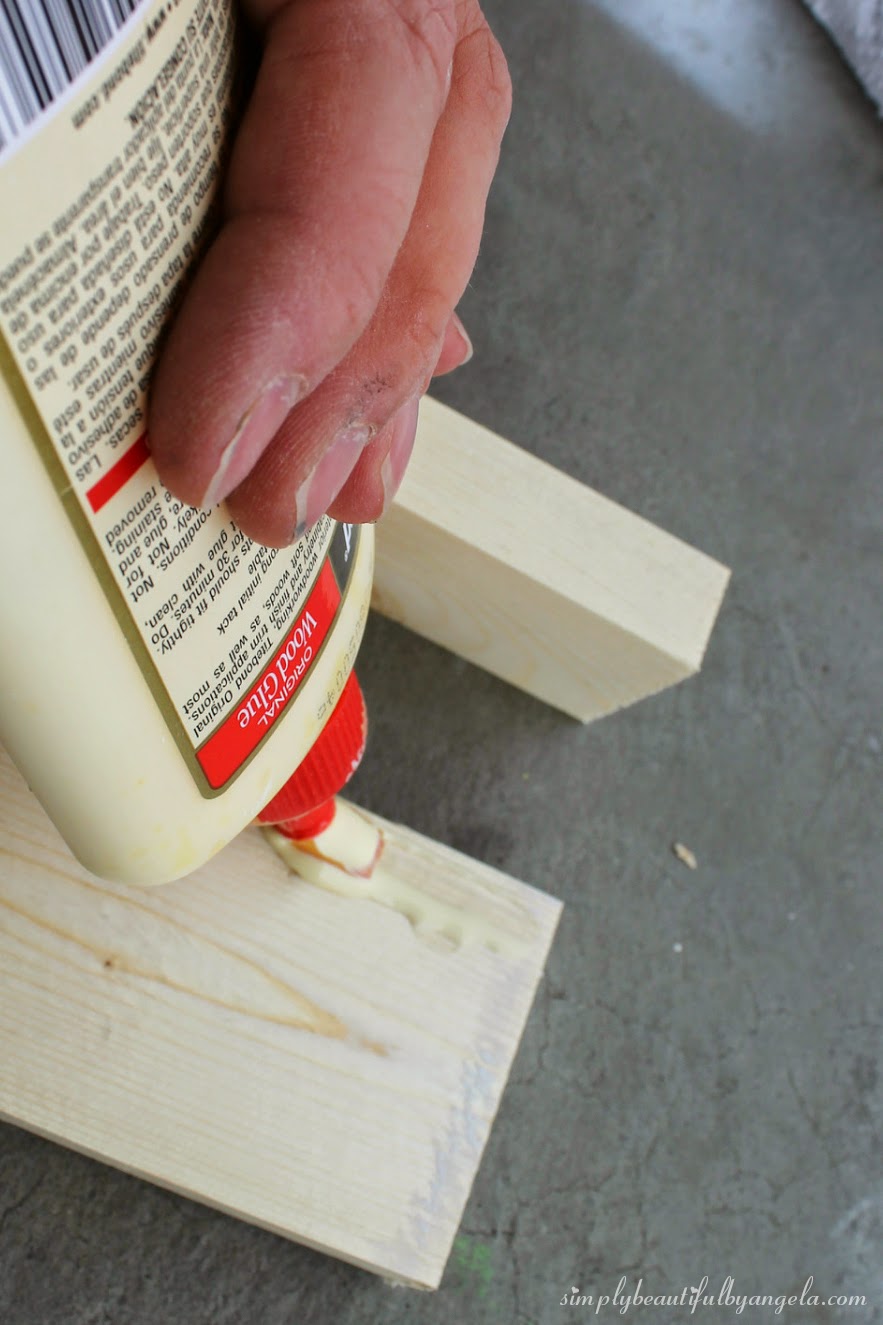 Using wood glue, secure the 1×2 to the 1×3, making an L shape.