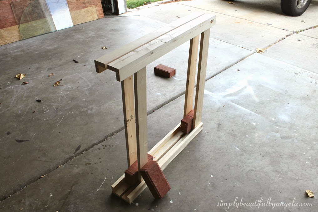 After these have dried for 30 minutes it is now time to connect the two sets of legs together using a 1×4 and a 1×3 cut to the length that you want for your table.