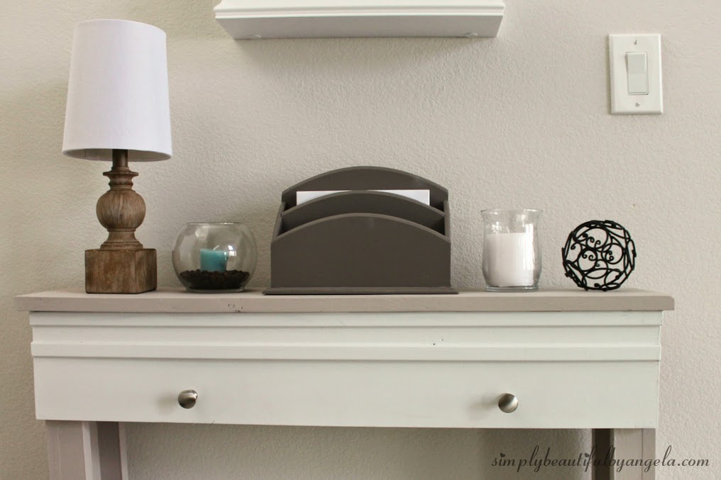 After a coat of primer and 5 coats of paint (yes–FIVE because I’m sooooo indecisive!!!) we now have a beautiful addition to our little foyer.