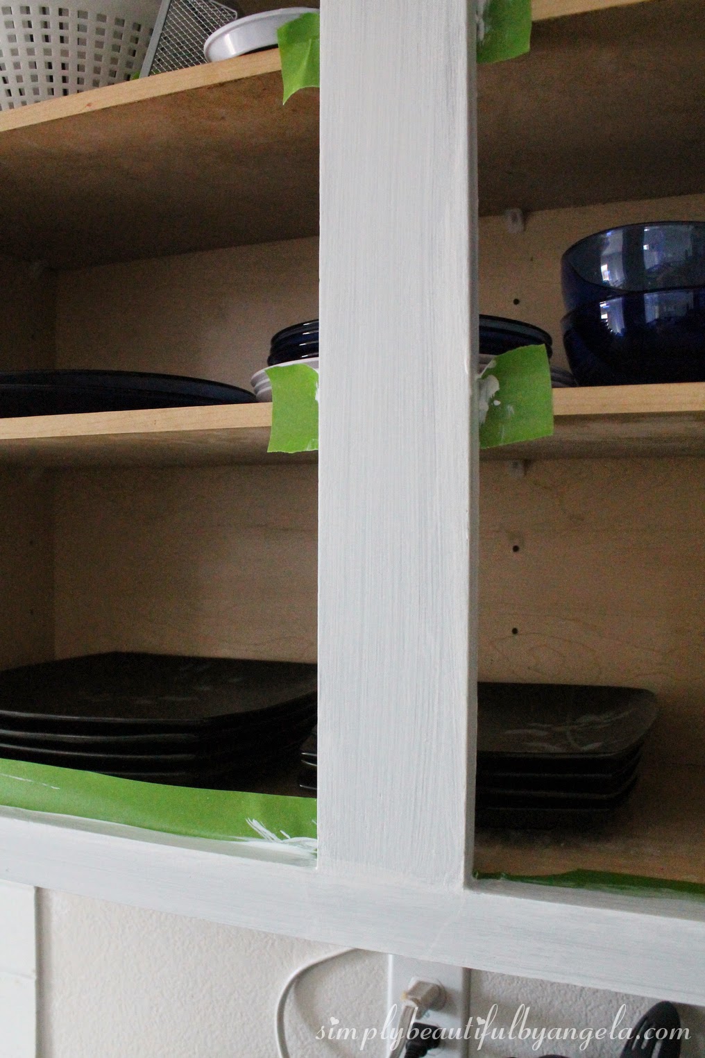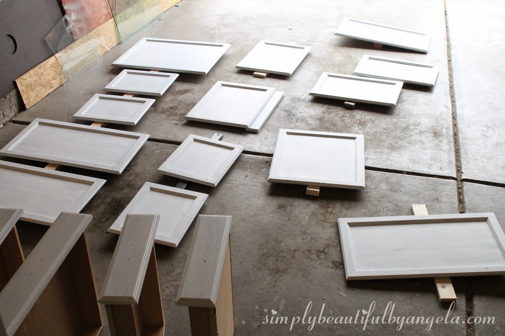 I added in my own step here. Since I was going from espresso to white, I painted each door and the frames with a coat of Zinsser primer.