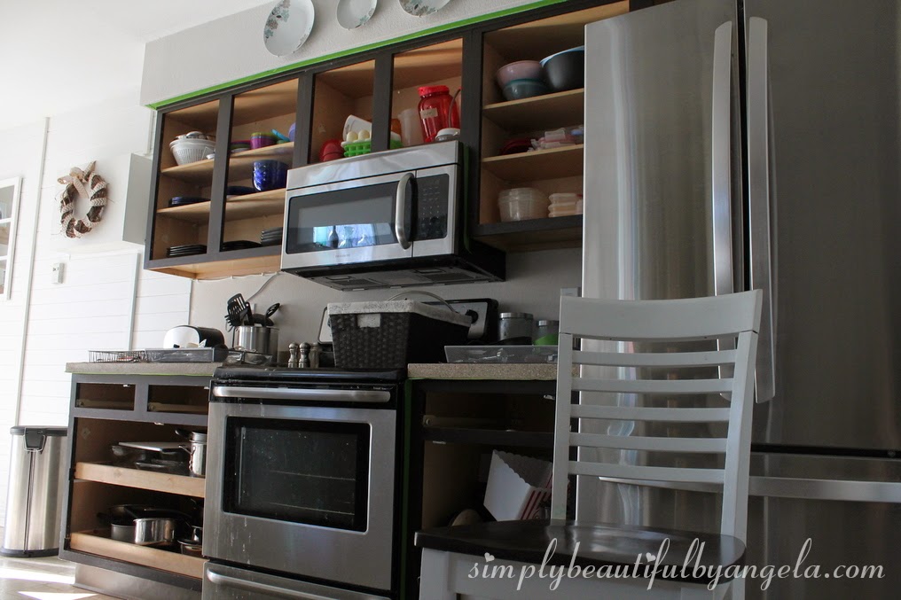 And since we don’t have any windows directly in the kitchen, I started to feel that the dark cabinets were making the space cave-like. So I became probably the only crazy girl in the world to paint her cabinets not once, but twice within a year. Yep that’s me.