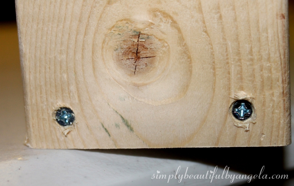 He then measured up where those holes would meet the 40″ connector piece and drilled pilot holes. Then he attached the two pieces together with wood screws.