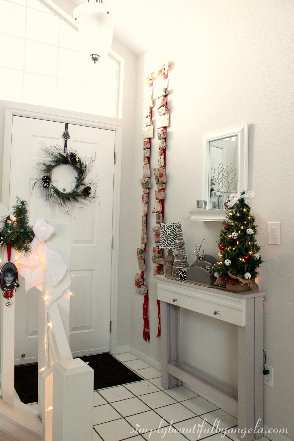I really enjoy dressing up my DIY entry table for the season since it’s something that we see everytime we come downstairs. (by the way the kids have been having a blast with their Ribbon Advent Calenders this year!)