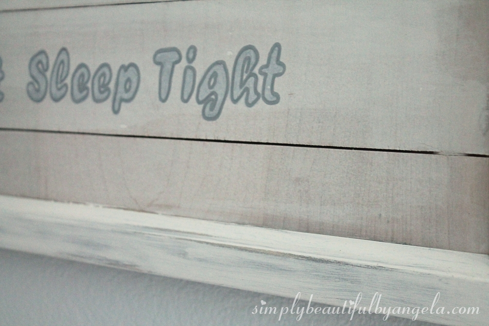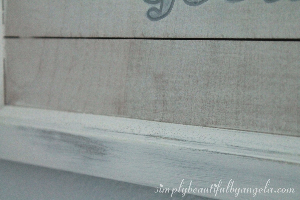 White washing the planks was a real struggle but I finally got it to turn out. When I originally painted my clip art and wording on, I only had one coat of white wash (water with a little bit of white paint). When I stood back to look at the finished piece, I felt like it didn’t fit in the room at all because the wood was too orange.