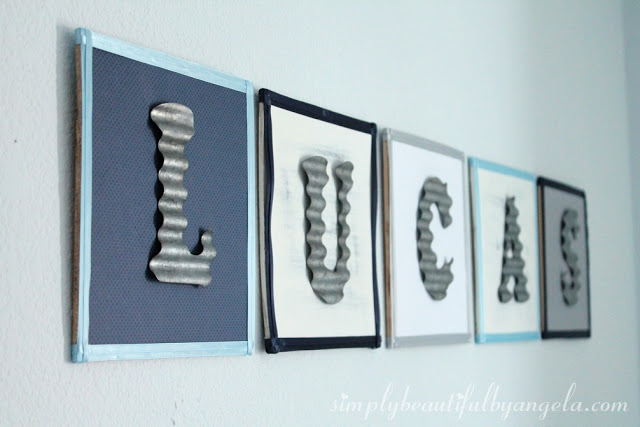 The gallery wall wasn’t the only DIY wall art that I made for this space, I also had fun spelling out his name with Metal Letters on Wood and using wood planks to make the Sheep Art.