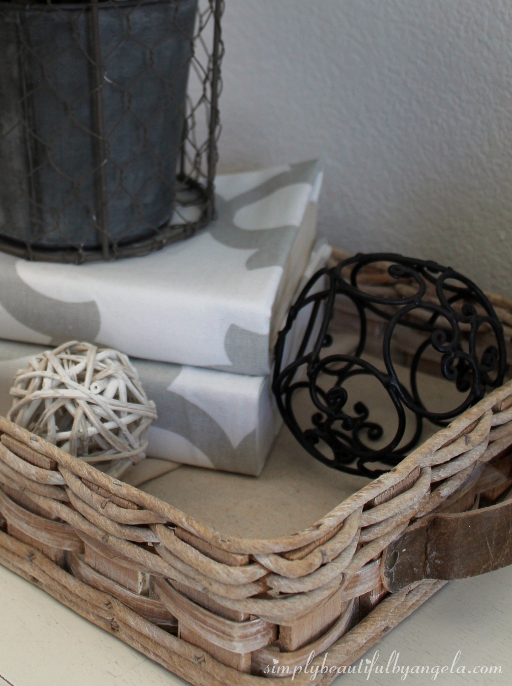 If you follow me on Facebook you may remember seeing this awesome basket tray that I scored at Goodwill for only $2.50. I gave it a couple of coats of whitewash to mute the somewhat orange tint that it had.