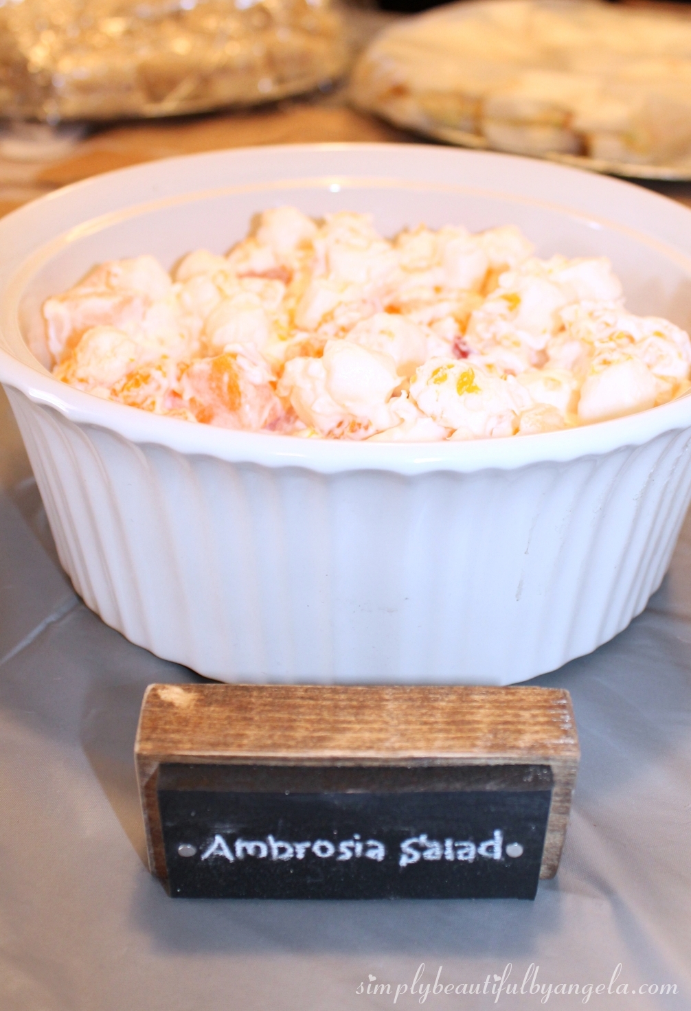 I informed guests to bring a copy of their favorite recipe to share with the bride and they dropped them off in another DIY chalkboard (tutorial on how I built these coming soon!).