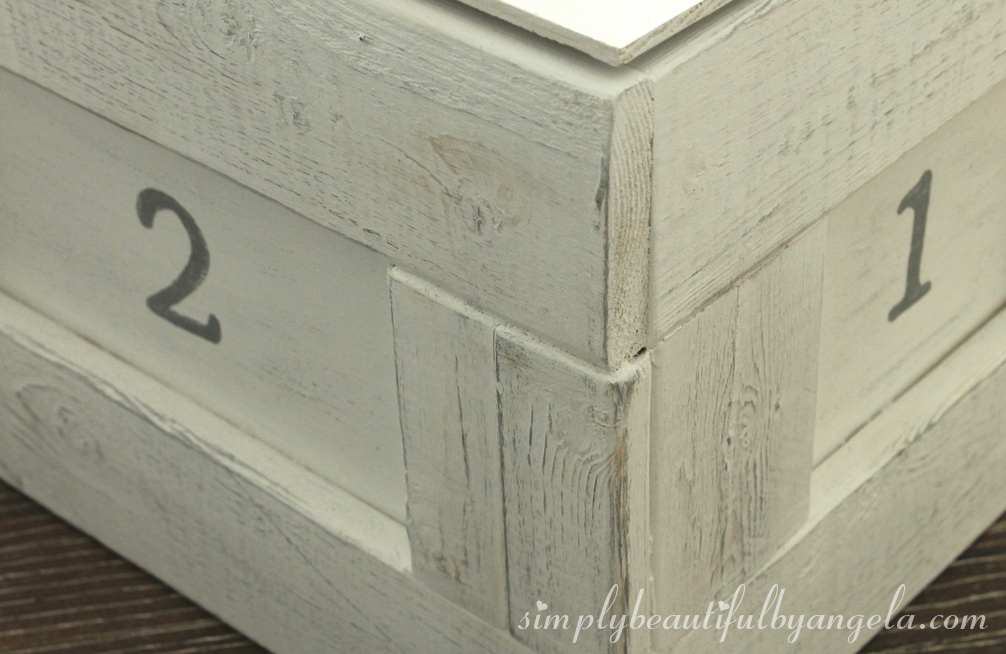 I took some sandpaper to distress it a little and was pleasantly surprised when I realized that the gray paint from a previous project that was on the sandpaper actually transferred over and I absolutely loved the look!
