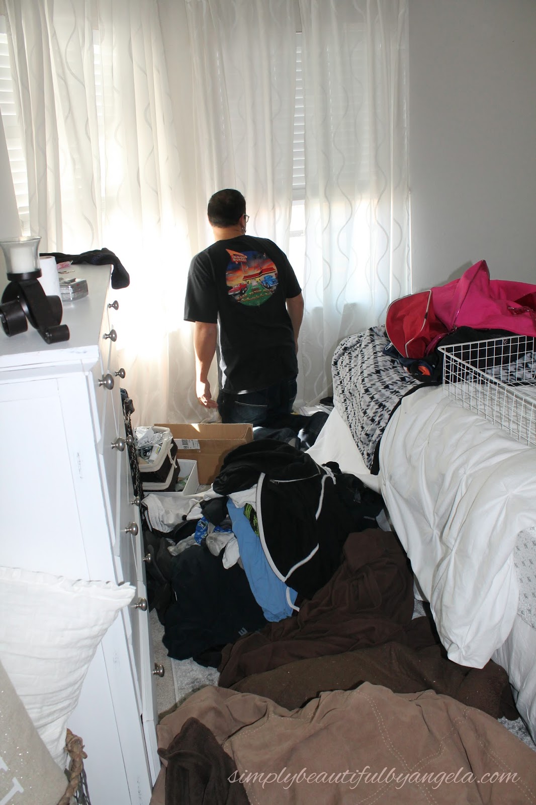 Speaking of messes–we finally tackled the mountain of clutter that we had taken out from under the bed when we replaced the frame.
