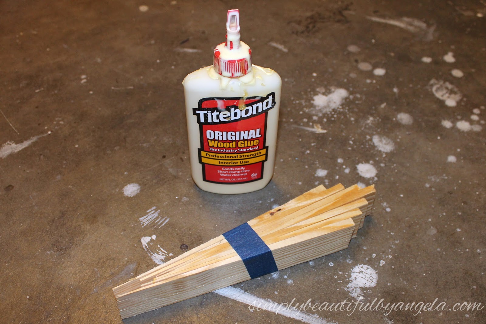 The next day when I flipped it over the wood glue had not only dripped through the cracks to the front of my design (which was so not fun to sand off…), but it also didn’t hold them on very well and the bunches started falling off left and right.
