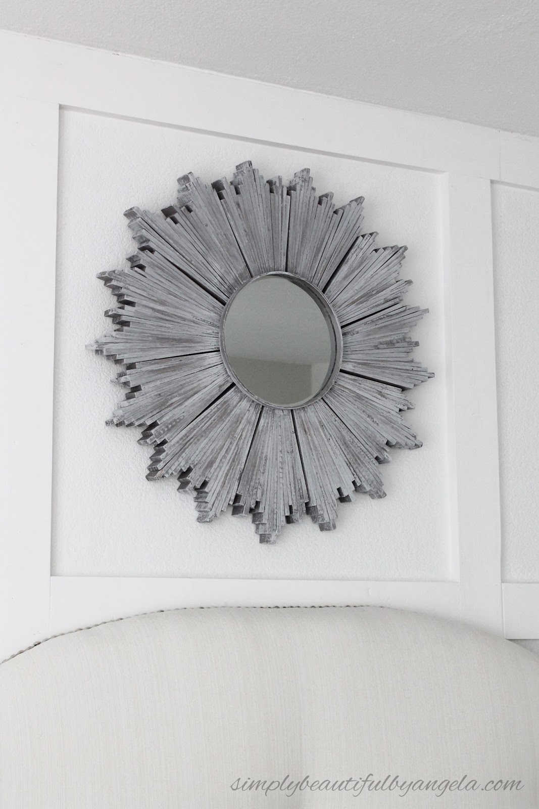 After a little browsing on Pinterest I soon had my heart set on what I wanted to put above the bed–a sunburst mirror!