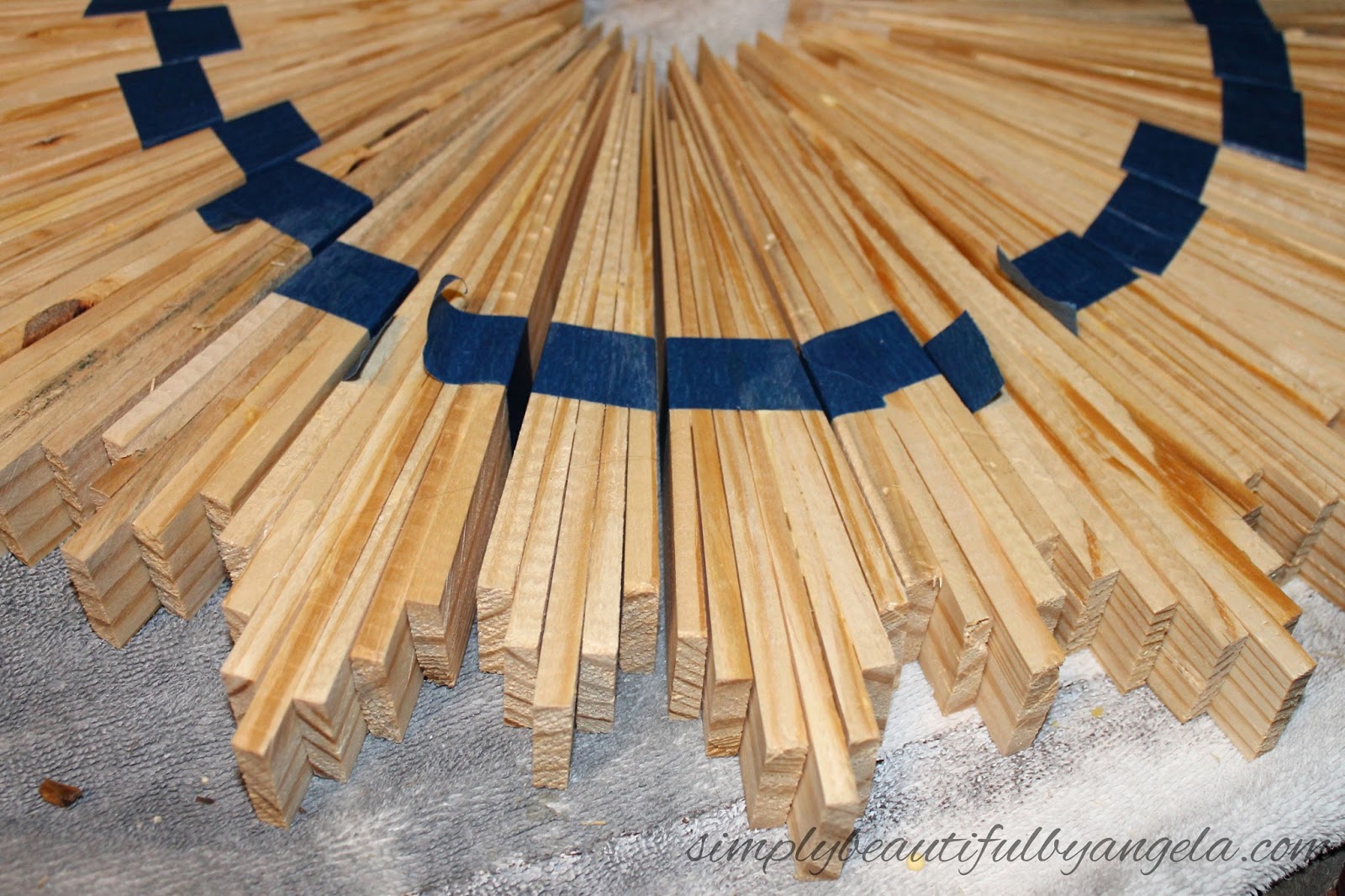 I began by creating bunches secured with wood glue. I wrapped each bunch in painter’s tape while the glue dried.