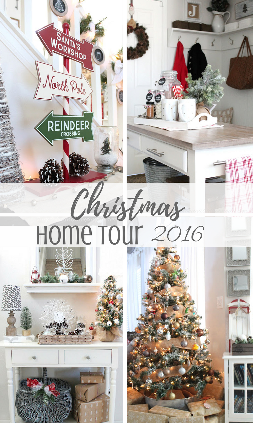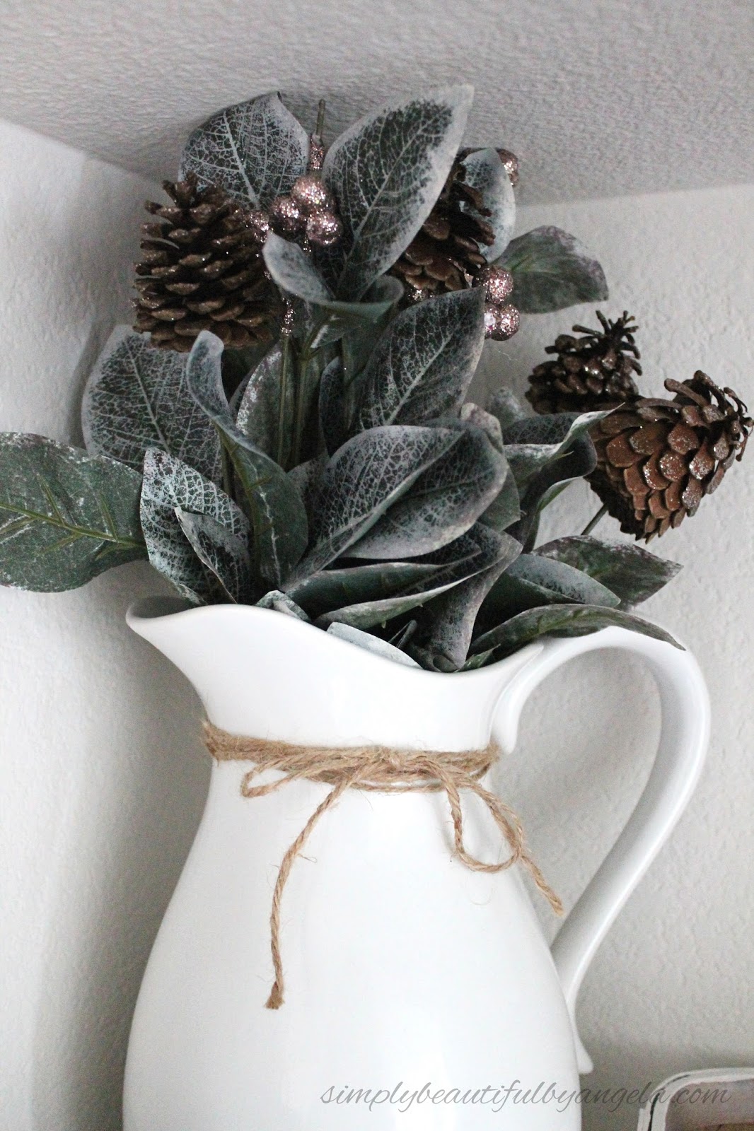 When I first saw this I thought to myself–what is it missing?? And then I realized that the only thing I have changed since then is added burlap, snow flock and a few ornaments . Pretty crazy how far it has come with just those few things, right?