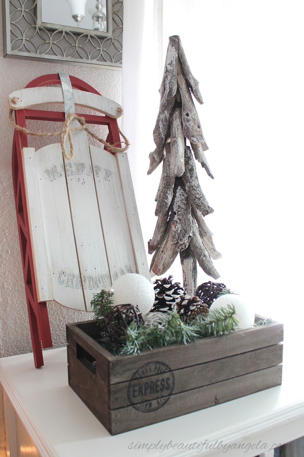 Next to the tree I added this sled and driftwood tree which seem to pair together perfectly for the perfect winter wonderland feel.