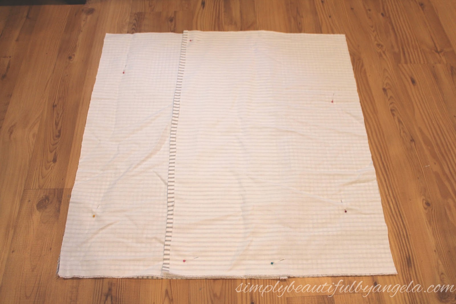 I pressed a hem on the long side of each back piece with the iron before sewing it down.