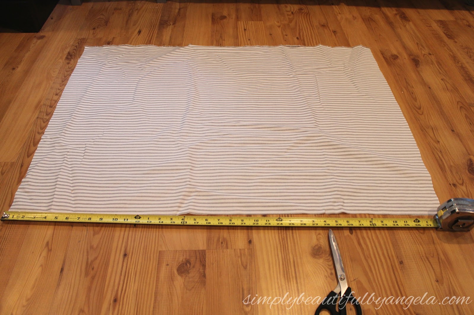 I ordered 3 yards of gray ticking online from a fabric store, but I recently noticed that it can also be found in a 44″ width (which is plenty for the size that I did) on Amazon for a little bit cheaper. Dang. At least I can pass on my savings to you guys!