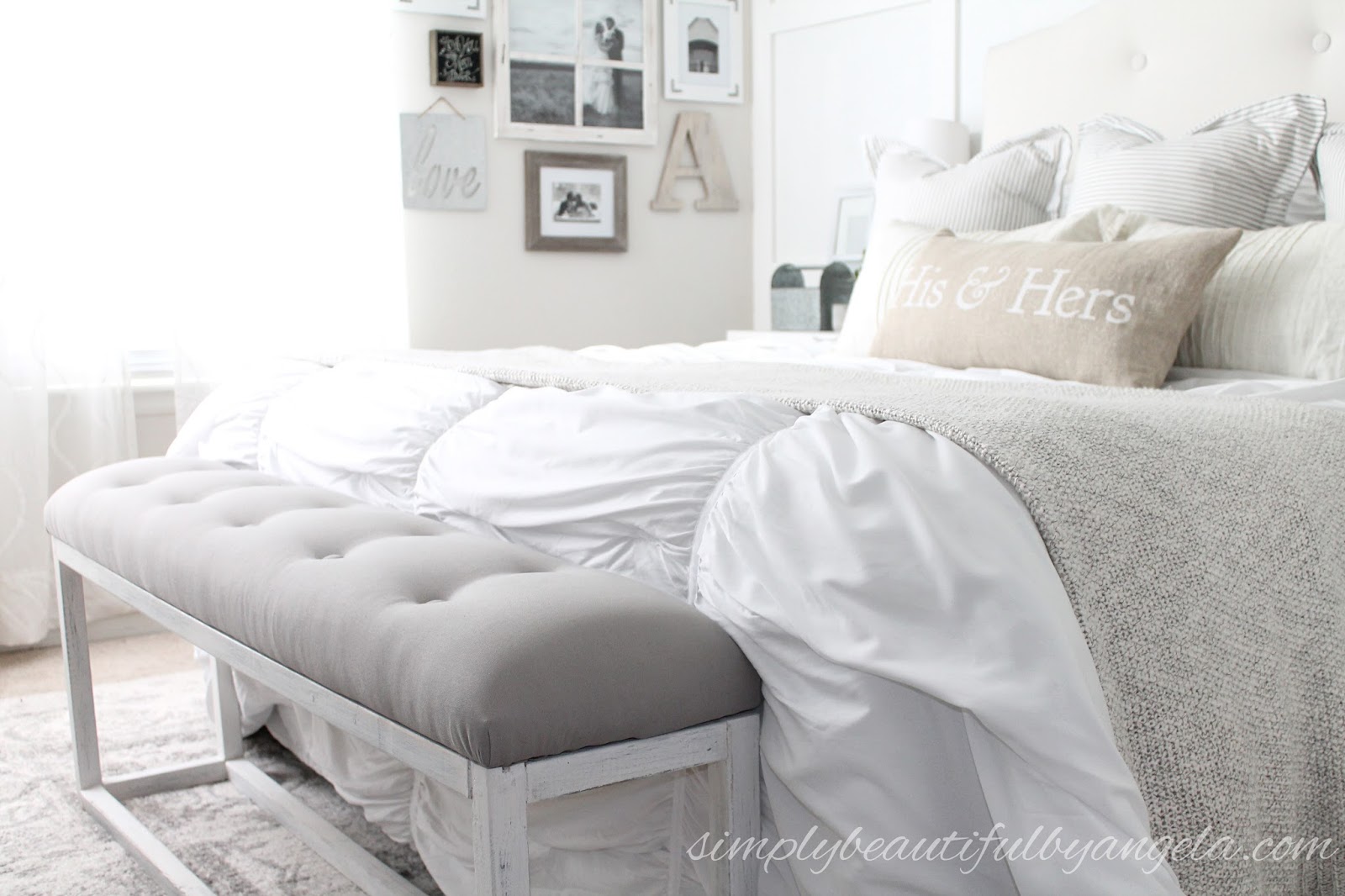 The DIY Upholstered Headboard definitely helps the bed feel much more luxurious, but euro pillows really add that plush and cozy feel.