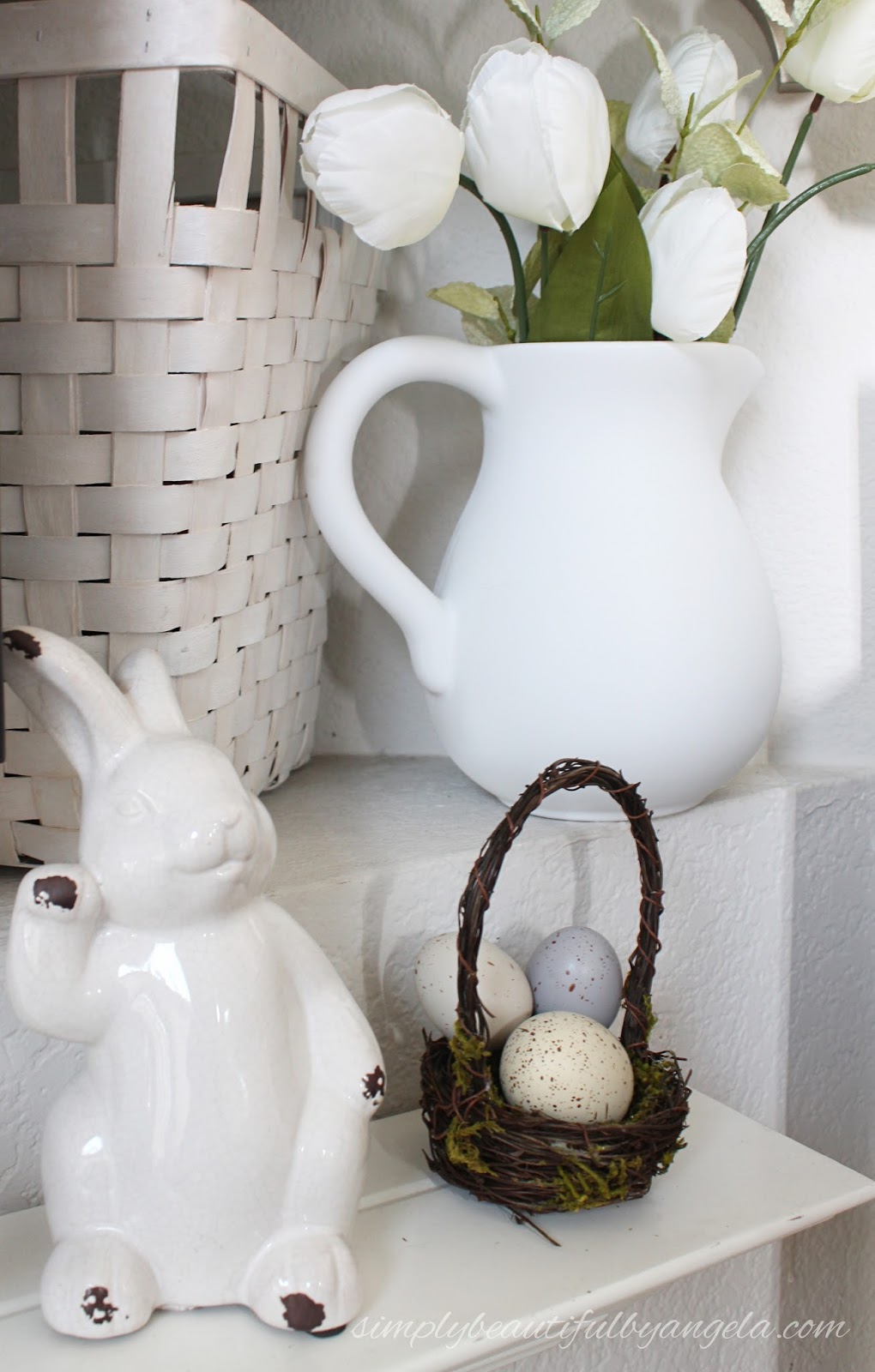 Nice home tour, everything is so white and natural. In the Spring its so nice to have bunnies everywhere. I love yours.
