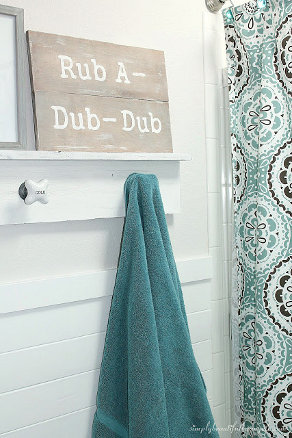 The first thing that I plan to tackle is the shiplap. I installed it in the boys’ bathroom (you can read about that here) and I just love the amount of character that it adds. It’s also really cheap! I only spent about $33 when I did this bathroom and will spend about that same amount on our bathroom.