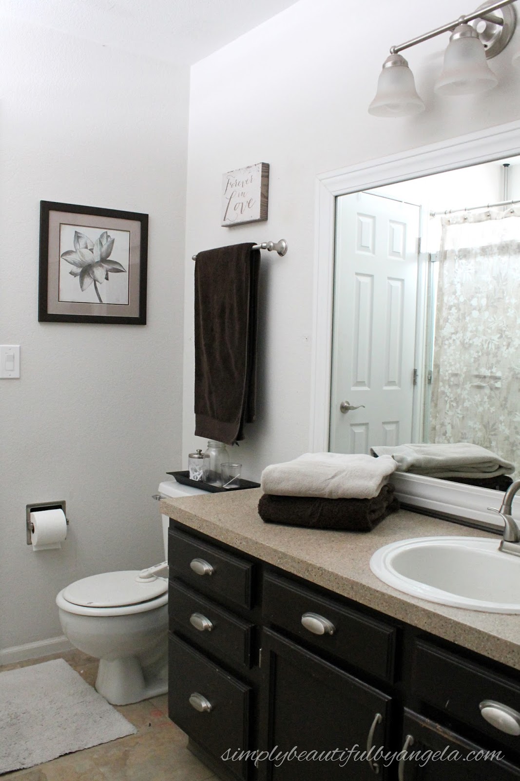 The vanity is about 99% painted and just needs a few touch ups here and there. I hope to have the doors and cabinets put back on this week and that alone will make me fee so much better.