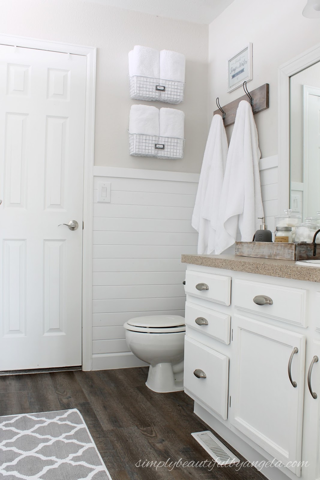 I also added planking to our bathroom walls and it helps break up the space and makes it feel larger than it really is.