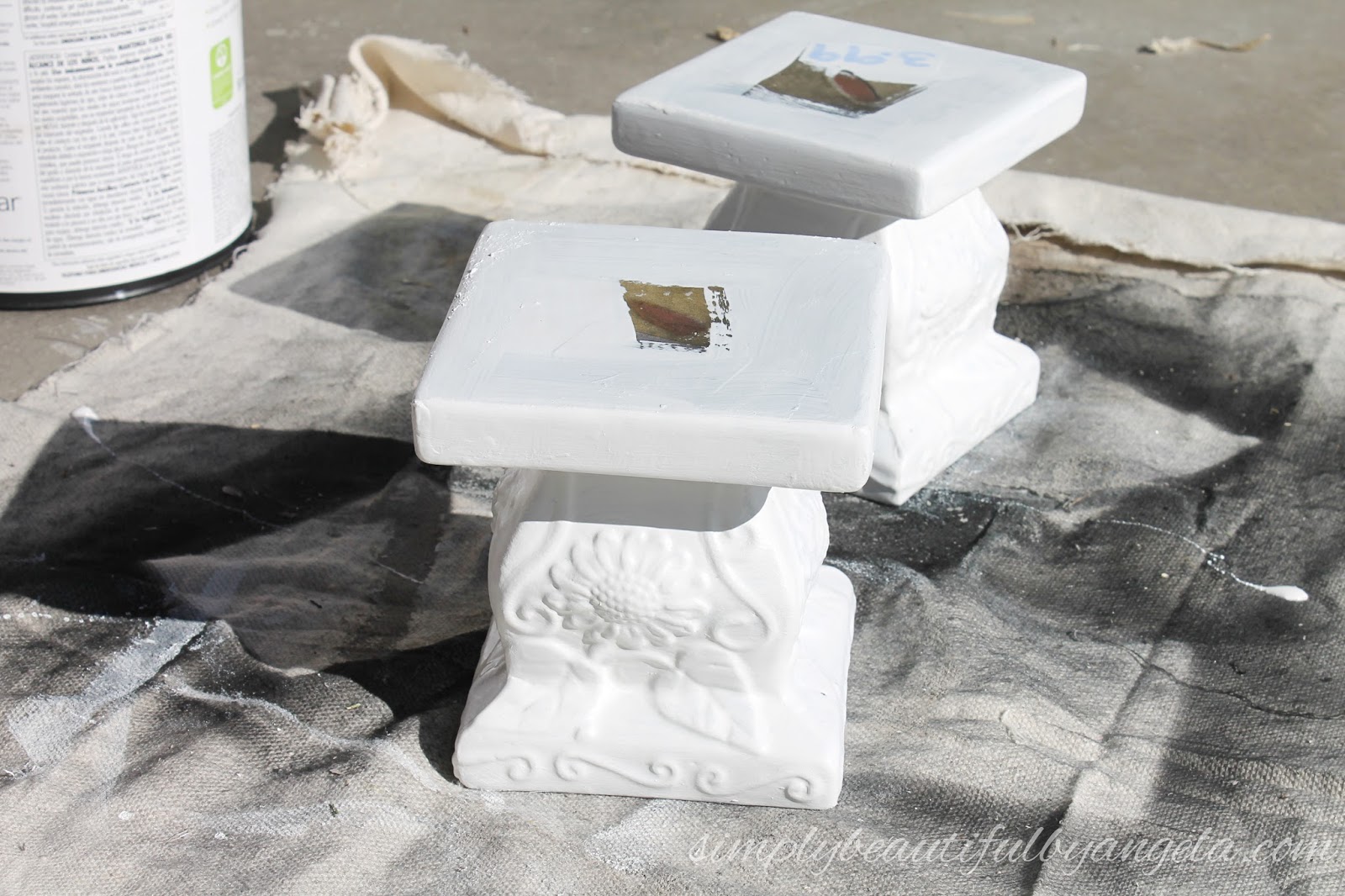 I applied some liquid nails to the back of the wood squares to attach them to the pedestals.