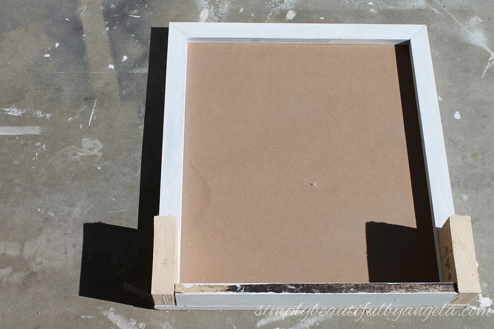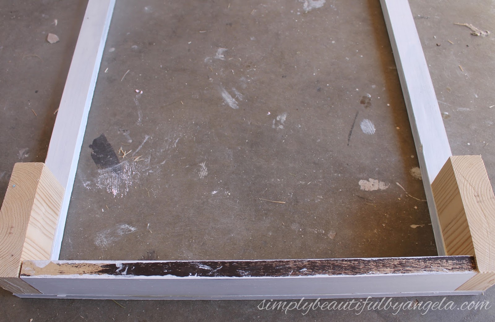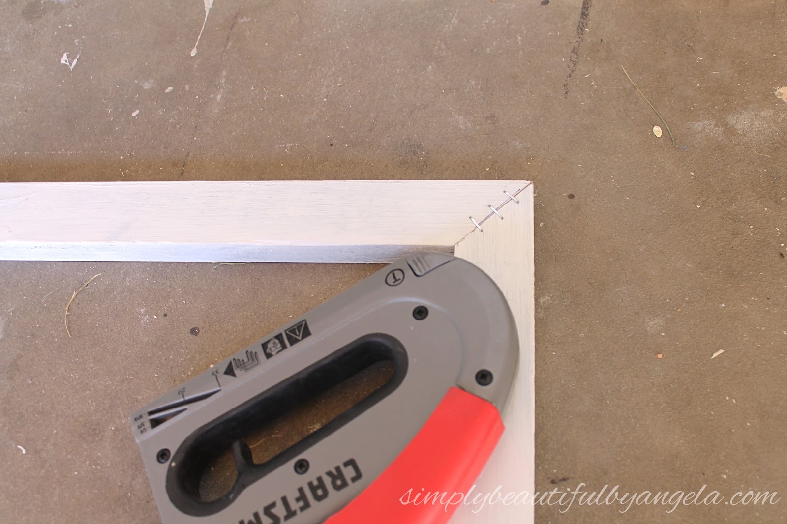 The first thing that I did was paint all of my wood with a coat of brown paint followed by two coats of white. You could also do this step later but I found it easiest to do it first.