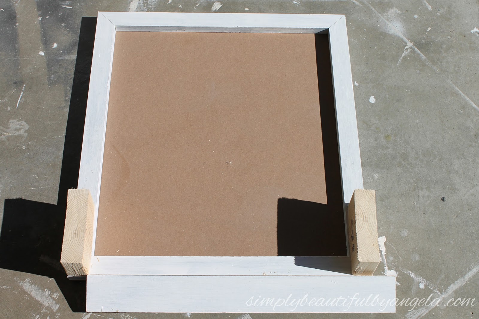 When it was dry I flipped it over and put nails through the back to attach to the 1x2s and the 2x6s. I also used some nails to attach the 1×6 to the 2x6s. (I hid the nails by tapping them in with a large screw and covering them up with wood filler.)
